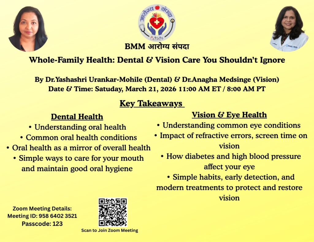 Your health is your true wealth. To support the well-being of our community, BMM proudly launches आरोग्य संपदा (Health is Wealth) — a dedicated initiative to bring together physicians and healthcare experts from across North America.