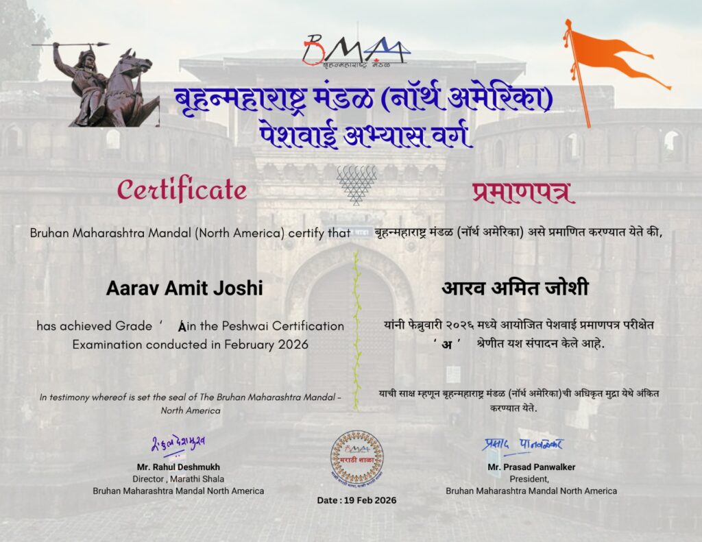 • Students volunteering for this program will continue their Marathi Shala classes and take the BMM-Bharati Vidyapeeth exam, which is mandatory.